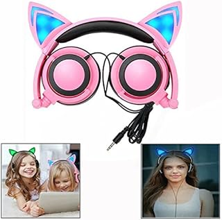 Cisixin Casque Audio Pliable Enfant en Oreilles de Chat, Casque Audio avec Lumière éclatante et Microphone intégré pour Ordinateur, MP3, MP4, Smartphone (Rose)