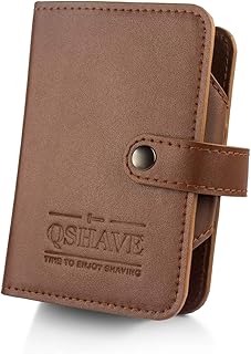 QSHAVE Étui de voyage en cuir avec compartiment pour rasoir de sécurité, blaireau, lames et coupe-ongles Marron