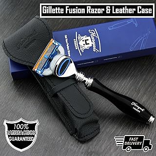 Rasoir de sécurité Parker, rasoir de voyage compatible Gillette Fusion à 5 lames avec étui en cuir de selle luxueux