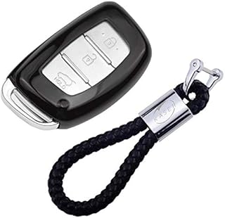 Coque en Silicone pour Clé Hyundai Keyless– Cover Housse TPU Souple en Chrome pour Télécommande Hyundai Solaris iX35 i30 Tucson Santa Fe Accent i20 ix25 Porte-clé Protection (Noir)