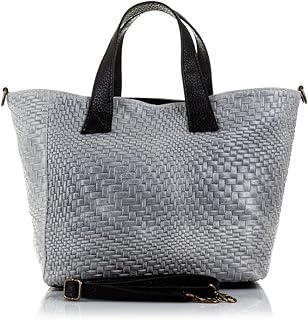 Sac de Femmes en Cuir véritable. Sac à Main fourre Tout Sac à bandoulière en Cuir véritable. Peau Impression géométrique. Made in Italy. Vera Pelle Italienne. 32 x 23 x 14 cm