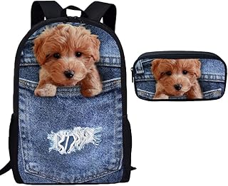 Coloranimal Lot de 2 sacs d'école pour enfant avec trousse Motif chien Denim