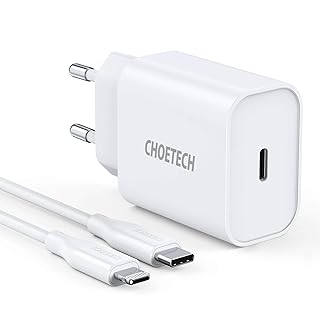 CHOETECH Charge Rapide iPhone 12, PD Chargeur USB C Power Delivery 3.0,Compatible avec iPhone 12 Mini/12 Pro/12 Pro Max/ 11 Pro/XS Max/XR/X/8 +,iPad Pro, AirPods, Câble USB C vers Lightning Inclus