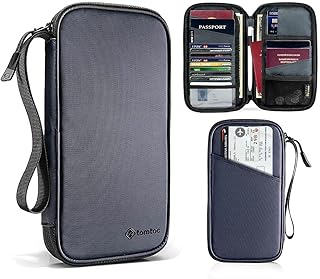tomtoc Porte-Passeport Familial Porte de Voyage avec Blocage RFID Porte-Documents Imperméable avec Bandoulière Fermeture à Glissière pour Femmes Hommes Pochette de 6 Passeports et 9 Cartes de Crédit