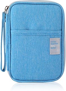 by Amazon - Porte-Passeport Portefeuille de Voyage Résistant à l'eau avec Blocage RFID, Sac de Passeport Familial Multi-Poches et Porte-Documents avec Support de Téléphone et Dragonne