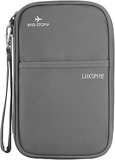 Voyage Portefeuille RFID Blocage de la Famille Porte-passeport avec Wristlet Étanche Voyage Organisateur Pochette Sac pour Hommes Femmes (Gris)
