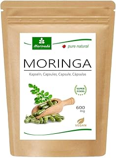Moringa capsules 600mg ou Moringa Energy Tabs 950mg - Oleifera, végétalien, Produit de qualité de MoriVeda (120 capsules)