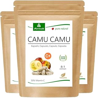 MoriVeda® - Camu Camu Capsules 8:1 extrait avec 50% de vitamine C naturelle (360 ou 120 pièces) - produit de qualité végétalien (3x120 Capsules)