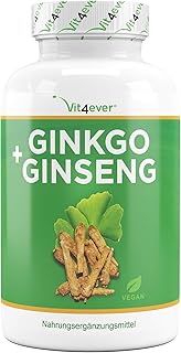 Ginkgo + Ginseng - 365 Comprimés - Extrait spécial - Hautement dosé - Testé en laboratoire - Ginkgo Biloba + Ginseng coréen - Qualité supérieure - Végétalien
