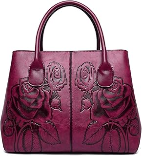 Sac à main porté main avec Bandoulière pour Femme Sacs portés épaule en Cuir PU Vintage Sac a main avec Fleur Classique Gaufrage rouge